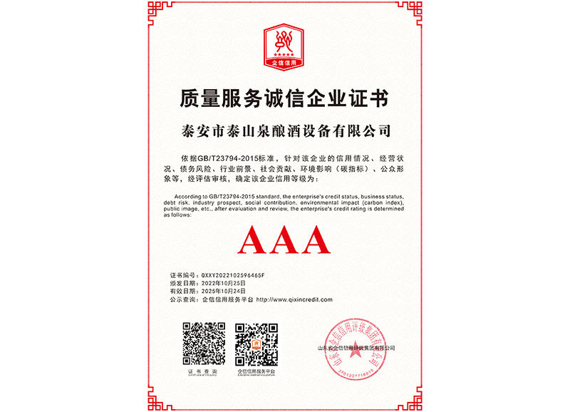 泰安市泰山泉釀酒設(shè)備有限公司,是一家專業(yè)從事釀酒設(shè)備機(jī)械化研發(fā)并集技術(shù)咨詢,工程設(shè)計(jì),制造安裝,人員培訓(xùn)及售后服務(wù)為一體的綜合性企業(yè),本公司主要產(chǎn)品為:大曲清香、小曲清香、大曲醬香、大曲濃香等香型白酒機(jī)械化設(shè)備。  本公司與中國科學(xué)院自動(dòng)化研究所簽訂技術(shù)服務(wù)合同,引進(jìn)先進(jìn)技術(shù),研究生產(chǎn)全自動(dòng)化機(jī)械釀酒設(shè)備,由中國科學(xué)自動(dòng)化研究所的技術(shù)支持,打造最先進(jìn)的生產(chǎn)釀酒設(shè)備,公司有信心打造全國最先進(jìn)白酒...